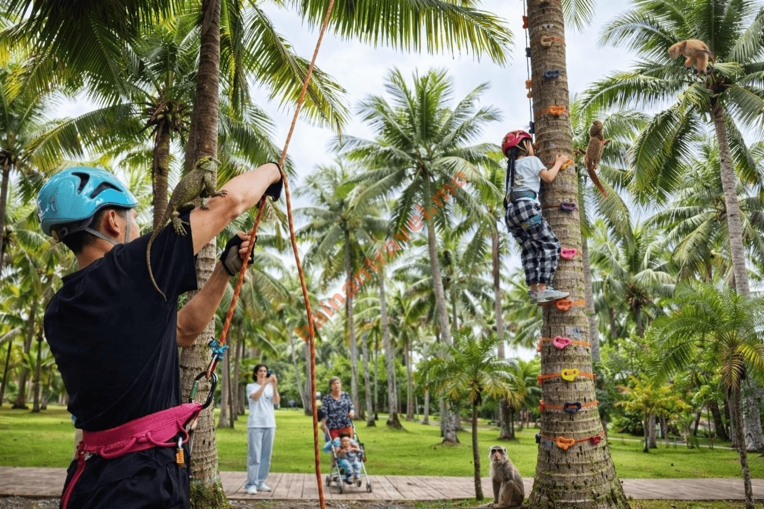 Парк выбирает несколько зон: от осмотровых маршрутов среди кокосовых рощ до специально оборудованных площадок для отдыха, образовательных экспозиций и зоны для отдыха у воды.