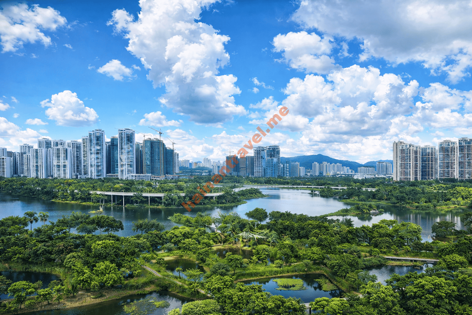 Dong’an Wetland Park (三亚东岸湿地公园) — городской водно-болотный парк в Санье, где вода и зелёные зоны создают ощущение прохлады и «воздуха» даже в центре курорта. Здесь приятно гулять без спешки, смотреть на пейзажи и наблюдать птиц.