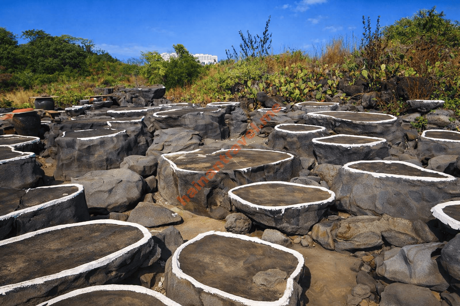 Основной интерес представляют сами соляные поля, выложенные из каменных плит. На них испаряется морская вода, превращаясь в кристаллы соли. Здесь можно увидеть традиционный процесс добычи соли, практически не изменившийся со временем.