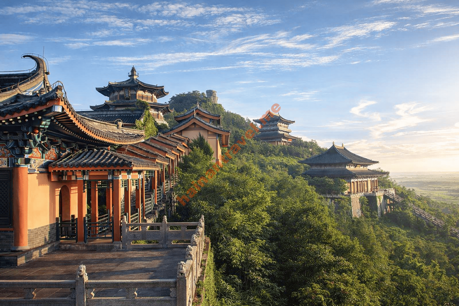 Основная часть комплекса — это храмовые постройки и павильоны, выполненные в традиционном китайском стиле. Здесь можно увидеть даосские и культурные объекты, скульптуры, декоративные ворота и внутренние дворы. Особое внимание привлекает сама гора Вэньбифэн, вокруг которой проложены прогулочные маршруты. Прогулка по территории позволяет насладиться видами холмов, зелени и архитектурных деталей. Место подходит для спокойных прогулок, фотографий и знакомства с философской и религиозной стороной китайской культуры.